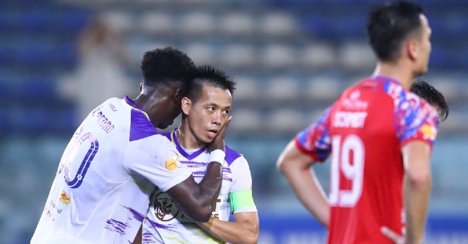 Có được bàn thắng, Hà Nội thi đấu thoải mái hơn. Các học trò của HLV Makoto Teguramori dồn ép đội khách. Phút 42, Hà Nội nâng tỷ số lên 2-1. Joao Pedro chuyền bóng thuận lợi để đội trưởng Văn Quyết tung cú sút quyết đoán như trái phá, đánh bại thủ thành Patrik Lê Giang.