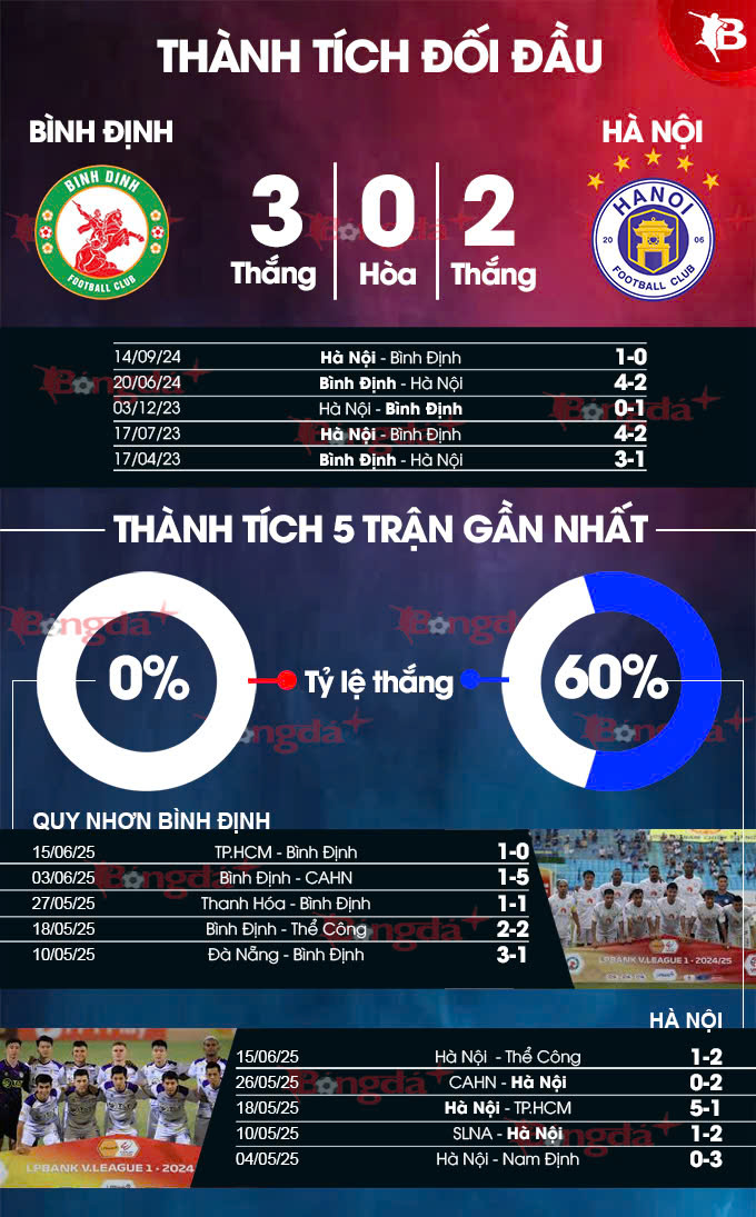 Thời đỉnh cao, Bình Định là khắc tinh của Hà Nội. Ở 5 trận gặp nhau gần nhất, đại diện đất võ thắng tới 3 lần. Tuy nhiên, đây là giai đoạn “xuống đáy” của Bình Định. Ngay cả khi Hà Nội không tung ra đội hình mạnh nhất, chiến thắng trước Bình Định vẫn nằm trong tầm tay của thầy trò Makoto Teguramori.