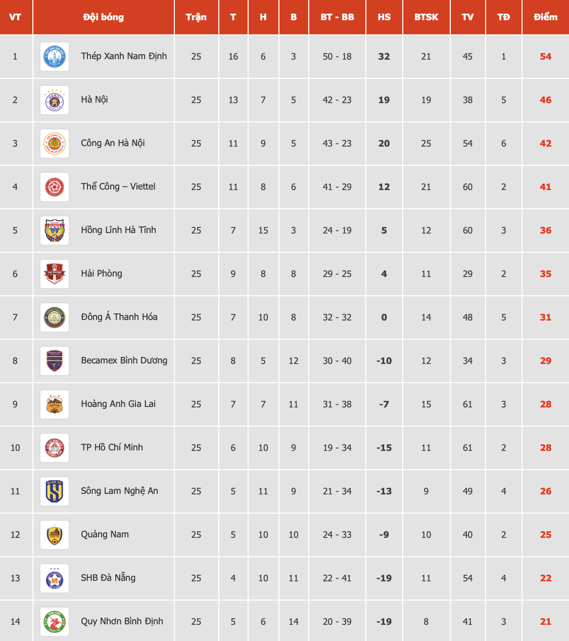 Với chỉ 21 điểm, kém 2 đội xếp trên lần lượt là Đà Nẵng (1 điểm) và Quảng Nam (4 điểm), Bình Định không có cơ hội trụ hạng trực tiếp. Đội bóng đất võ cũng không thể tự quyết thứ hạng của mình, ngay cả khi giành chiến thắng trước Hà Nội. Bởi nếu ở trận đấu cùng giờ, Đà Nẵng và Quảng Nam đều thắng, Bình Định vẫn là đội rớt hạng trực tiếp.